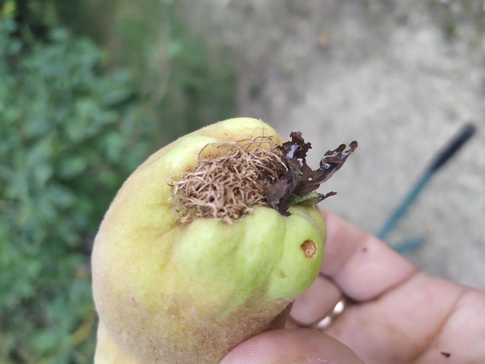 Metti la località, l'annata, rispetto al solito, dalle tue parti, è stata diversa in qualcosa? L'albero è in qualche modo in sofferenza? La polpa dei frutti è normale? Grandinate? Nuovi attacchi di parassiti? Le mie cotogne sono attaccate da larve e monilia, ma effettivamente non ho mai visto un fenomeno del genere, sembra che frutto voglia mettere radici.