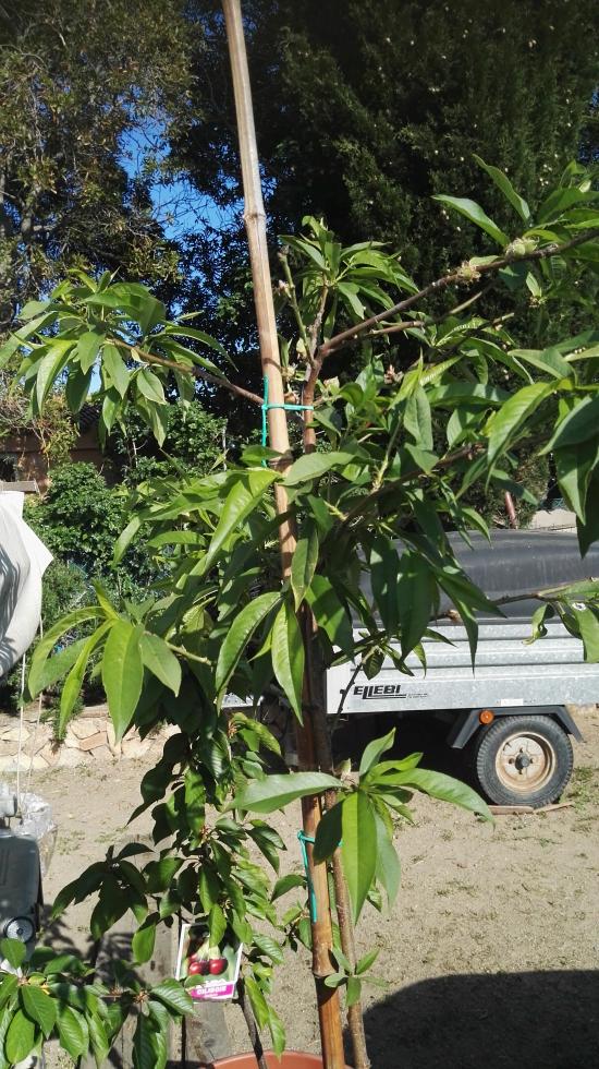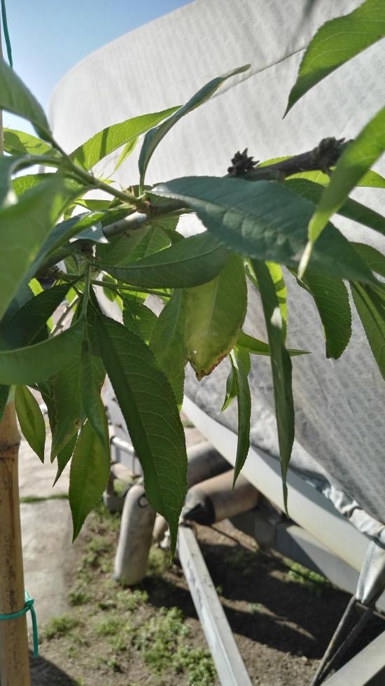 Buona sera,il mio pesco, coltivato in vaso,presenta qualche foglia come da foto,le foglie colpite poi cadono,la pianta,in generale,si presenta bene,sta vegetando e sta allegando una decina di peschine,vi invio qualche foto