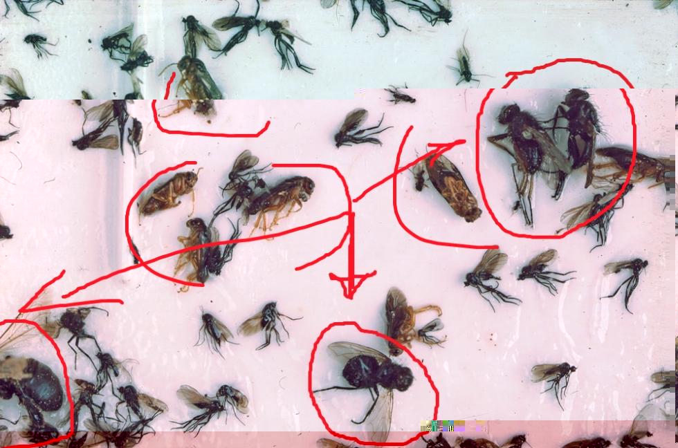 Si possono appendere trappole cromotropiche di color bianco per monitorare i voli (foto 1); ovviamente bisogna saper discriminare le tentredini da altri insetti che rimangono appiccicati (foto 2, ci si aiuta anche con una lente se necessario). Sono autorizzati insetticidi piretroidi in post-fioritura per chi ha il patentino (es. beta-ciflutrin).