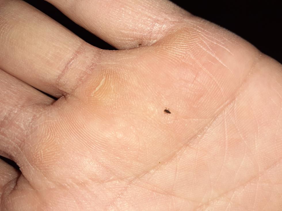 Quell'esserino della foto però non mi sembra un afide; come forma sembrerebbe piuttosto una minuta larvetta di un insetto predatore. Gli afidi in ogni caso formano colonie, dunque si dovrebbero ben osservare nell'insieme...almeno se attualmente sono presenti.