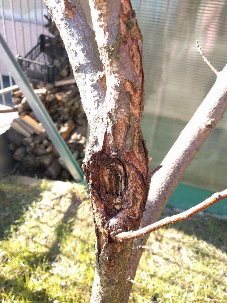 Lo scorso anno, in primavera, ho tentato di modellare una pianta di albicocco di 3 anni. Piegando una branca principale per poi fissarla con una corda ad un paletto, ho esagerato troppo con la forza ed ho purtroppo rotto il ramo di una prima branca sul colletto di collegamento al tronco.