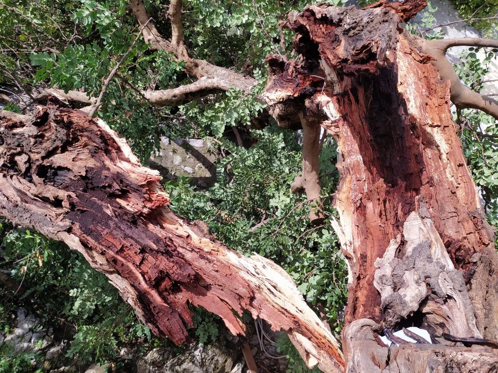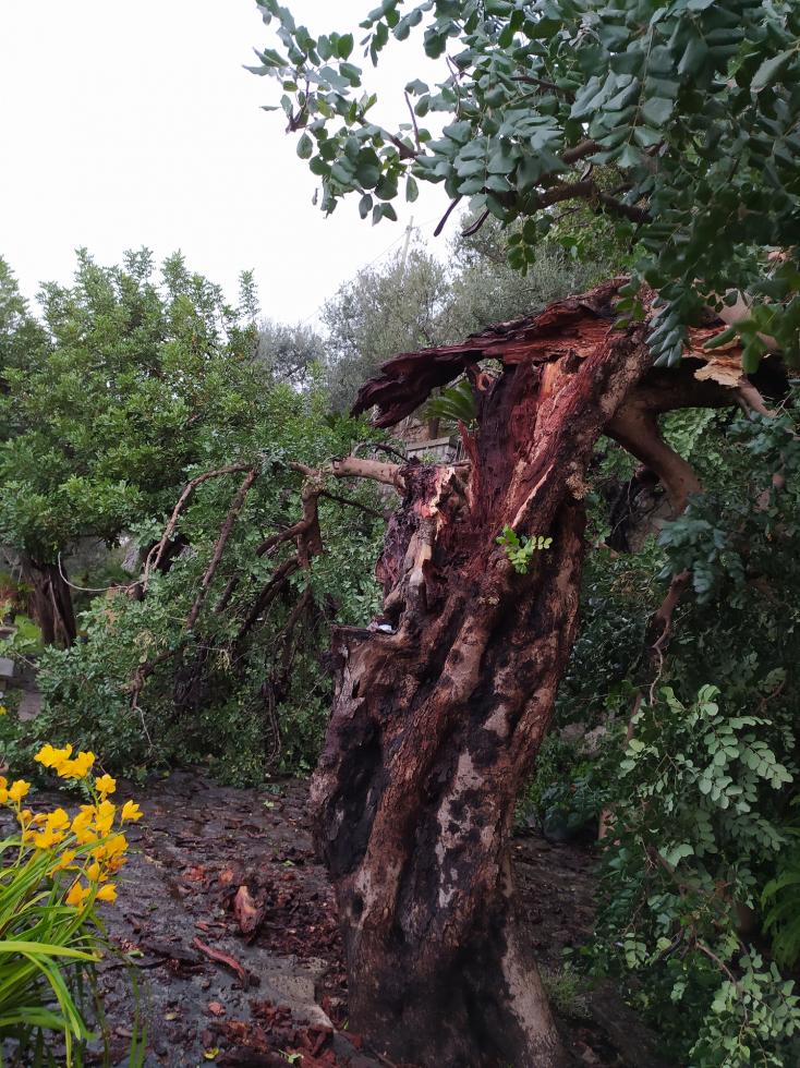 uno in particolare, un Carrubo particolarmente anziano a cui tenevo molto e che ombreggiava e rinfrescava il terrazzo, è stato letteralmente spezzato a metà: