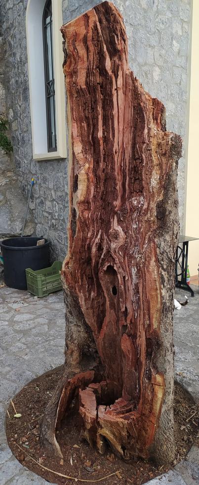 a dir la verità l'albero mostrava già segni di indebolimento/malattia (la parte a sud del tronco si stava sbriciolando, qualche anno fa gli era nato un fungo nella corteggia del tronco ed era un paio di anni che "piangeva resina") e proprio per quest'estate era stata programmata una potatura per cercare di alleggerirlo...ma non abbiamo fatto in tempo.