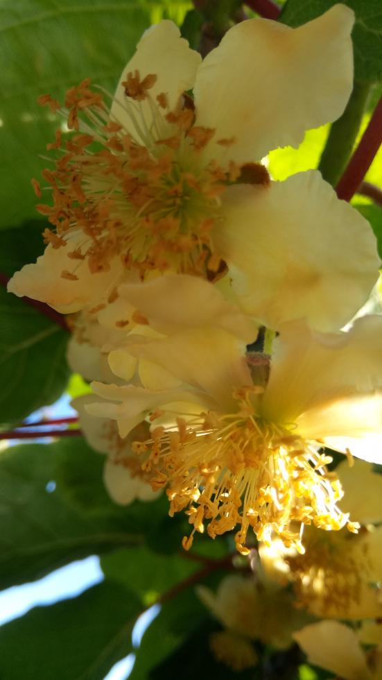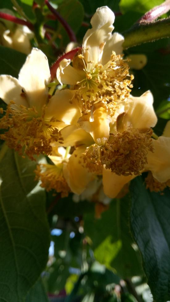 Con mia sorpresa ci ho trovato pure una pianta di kiwi che mette sempre dei bei fiori ma frutti niente. Dopo qualche anno, colto da leggerissimo sospetto, ho capito che serve sia il maschio che la femmina. Mi pare aver capito che l'alberello in questione masculo è! Gli esperti potranno confermare dalle foto che allego.