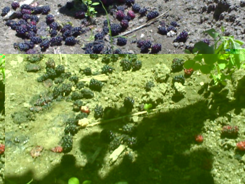 Grazie alle abbondanti piogge c'è stata una produzione molto abbondante...peccato pero' che nonostante siano belli grossi hanno un sapore un po' annacquato"...inoltre basta una minima folata di vento che te li ritrovi tutti a terra a formare un bel tappeto di gelsi..