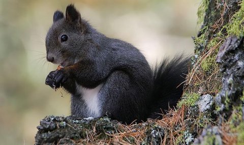 Poiché non si finisce di imparare ho cercato ancora, e questo è ciò che ho trovato circa lo scoiattolo meridionale (ti metto una foto da rete) "La dieta è contraddistinta da alimenti vegetali, anteponendo quelli più calorici, soprattutto in inverno, come ghiande, castagne, nocciole, noci, faggiole (semi del faggio), con un’indiscussa predilezione per i pinoli contenuti negli strobili, specie se di pino laricio calabrese o di pino loricato. Avendo comunque un’ampia dieta, non disprezza i germogli, le cortecce, le foglie tenere, i funghi e in particolare i molti boletus pinicola o edulis, ritrovati mangiucchiati nella Sila. Lo scoiattolo nero è poi ghiotto di frutta, addirittura è stato visto in alcuni vigneti alle falde della Sila, intento a nutrirsi di fichi e uva"