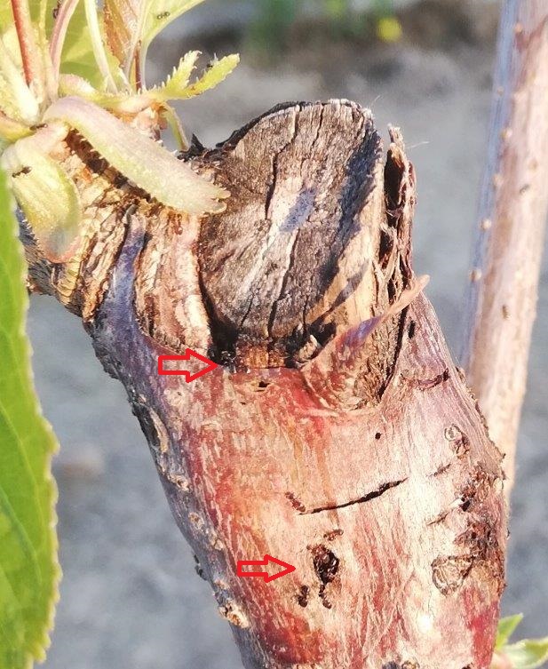 quello è un taglio in cui occorreva quando fu eseguito cicatrizzare con pasta e l'acqua è entrata causando una tana di insetti giusto come dice Alverman tagliare e cicatrizzare con pasta di verderame