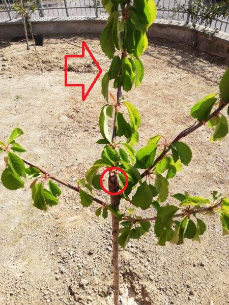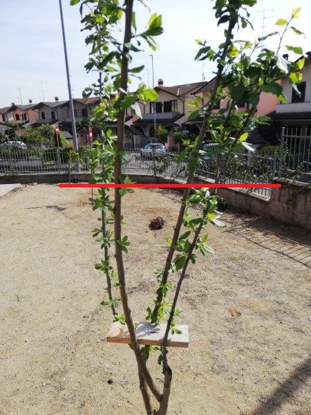 Approfitto per un'altra domanda, questo è un susino, appena piantato anche lui, posso eliminare un pò di verde diciamo al di sotto della linea rossa? Mi sembra troppo pieno... Allegato: