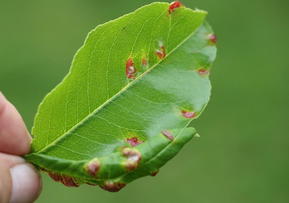 T. pruni è 'bozzacchioni', termine che si trova anche in Dante perché è fenomeno conosciuto da molto tempo): dunque se l'Autrice è agronoma correttamente per la sintomatologia rimane solo sulle manifestazioni tipiche sui frutti;