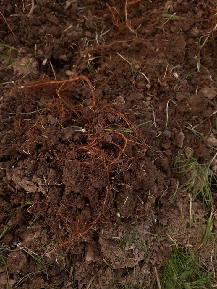 L'esempio della foto è in un punto del terreno in cui la pianta più vicina è un olivo a 10-15mt di distanza, poi c'è un rosmarino a 5m ma non mi sembrano radici né dell'uno ne dell'altro.