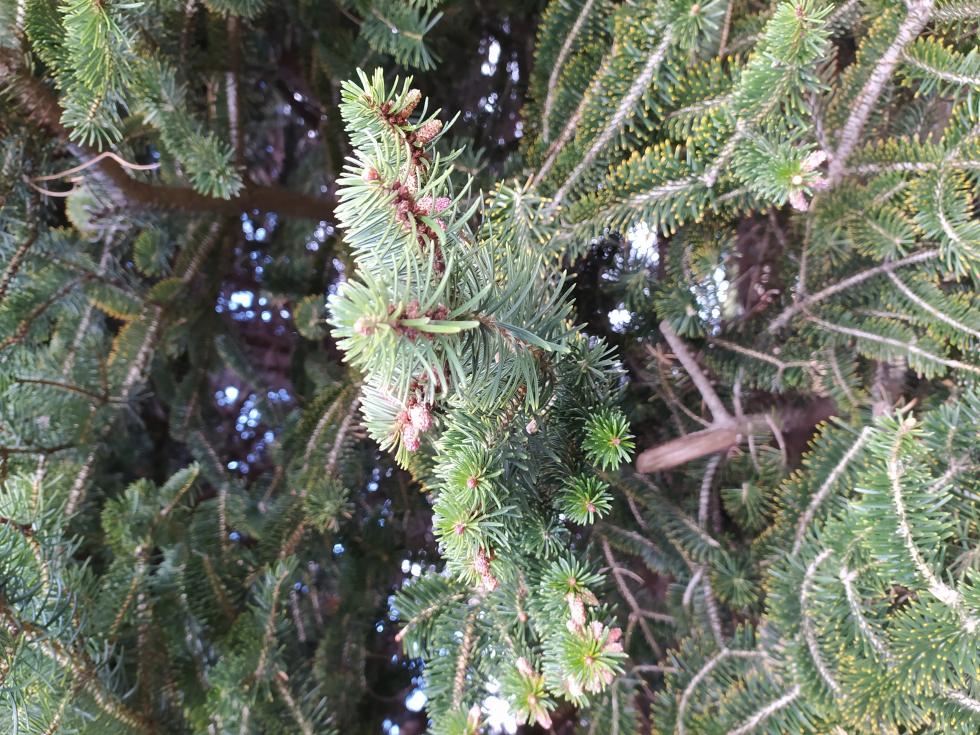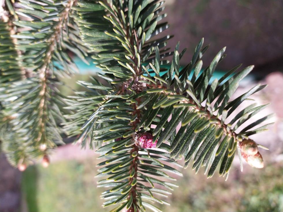 Queste sono le migliori foto che potessi fare, spero possano esservi di aiuto per il riconoscimento. Per quanto riguarda le pigne...beh si in effetti anche io avevo pensato al fatto che non venisse impollinato visto che in zona credo che sia l'unico abete presente...