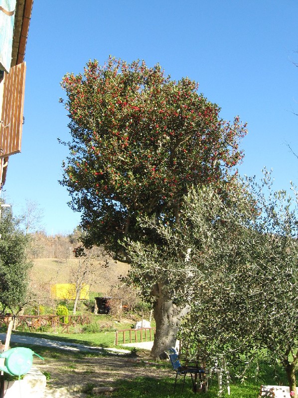 Questo magnifico esemplare di agrifoglio si trova dalle mie parti, colline romagnole. Tempo addietro sull’Appennino tra Toscana ed Emilia-Romagna erano presenti boschi di agrifoglio ormai diventati una rarità. L’albero nella foto a circa un secolo di vita o forse più.