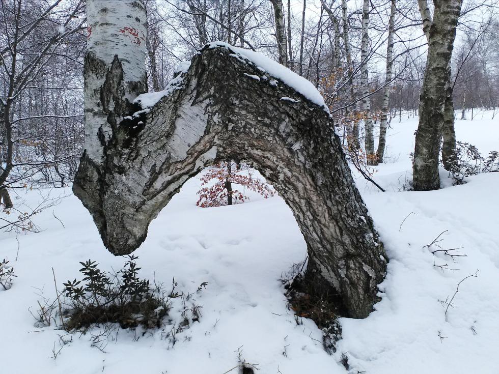 Alessandro1944 ha scritto: Che spiegazione si può dare a questo ripiegamento singolare del tronco? Sembrerebbe la rottura in due punti del tronco principale, forse in giovane età, dovuta a neve o altri fattori. Il fusto vero e proprio, è probabilmente un ramo laterale che poi è diventato il tronco principale.