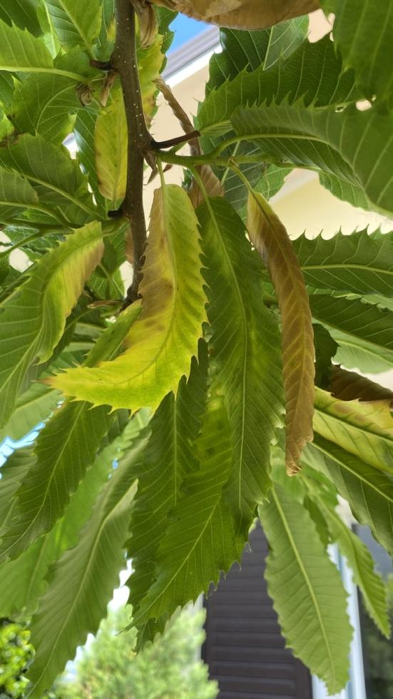 Castagno in vaso- alcune foglie gialle e che seccano