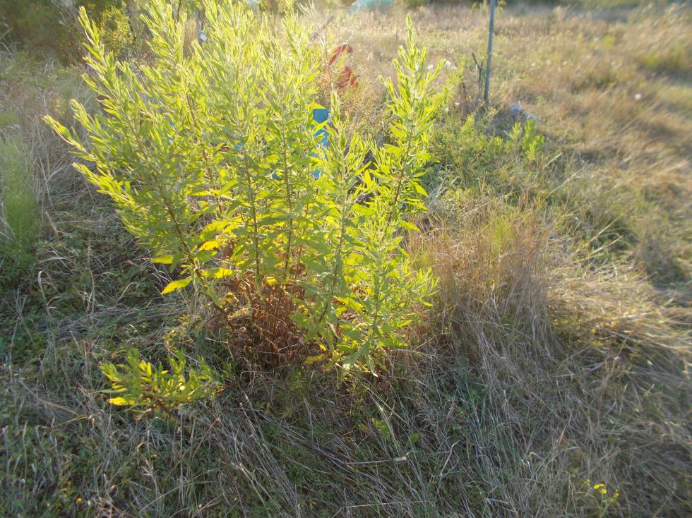 Ultimamente è diventata un po' invadente una piante che non so se definire arbusto o erbacea perenne, le foglie sono seghettate, ruvide al tatto, strofinate emettono un odore resinoso molto accentuato , le infiorescenze, che compaiono verso settembre, sono fiorellini gialli, i fusti, inizialmente verdi, quando lignificano diventano color ocra, allego foto prese oggi, con la pianta che si appresta ad emettere le infiorescenze, e una foglia basale per dare idea della forma.