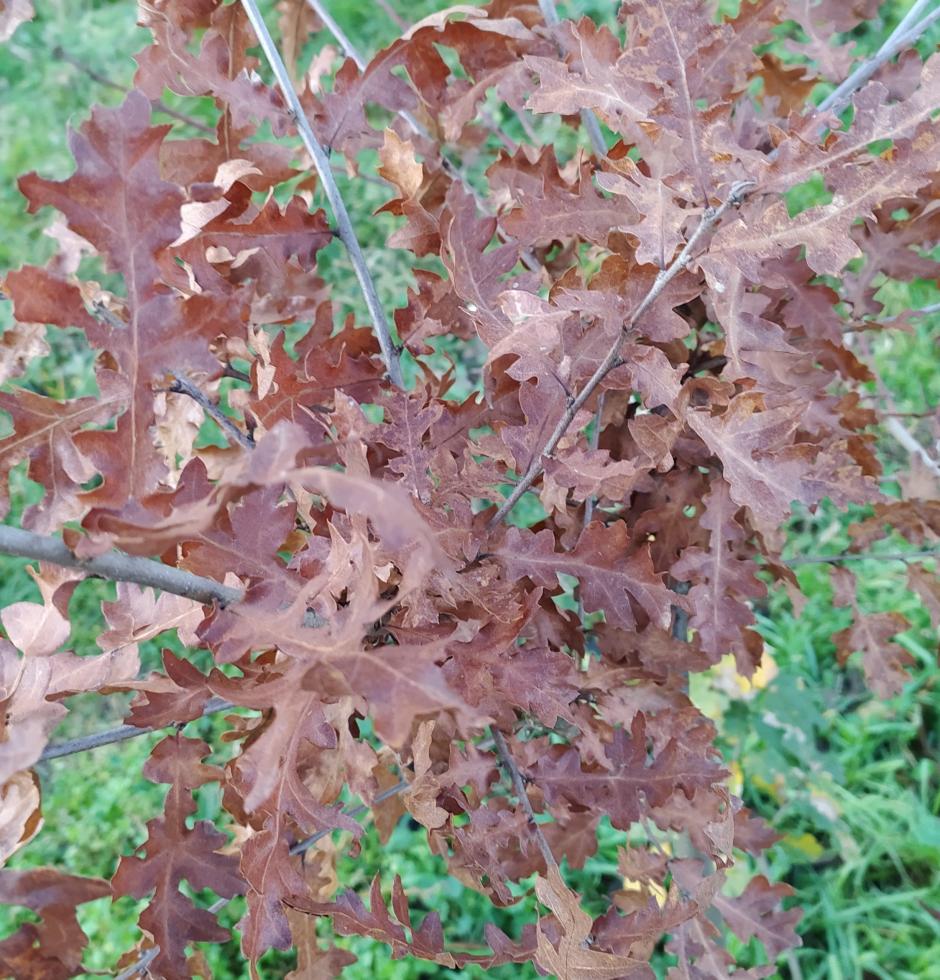 Potrebbe essere una roverella quella con le foglie "secche" e un cerro l altro? Eppure le piantine sotto le piante da cui le ho prese dalla forma della ghiande sono sicuro era un Cerro, magari sono state trasportate da qualche animale.