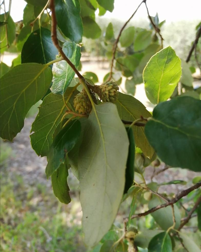 Ecco le foto. Le foglie del "mio" albero sono piccole, coriacee e con denti acuminati; la corteccia è invece simile a quella postata da Luca. Però ovviamente bisogna tener conto di biotipi e varietà, perciò ho chiesto altre informazioni.