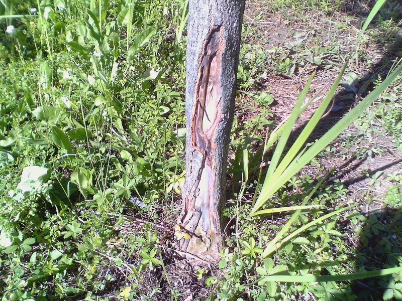 ora che abbiamo scoperto cosa è... vi posto la foto dal piede che è danneggiata, anche se la pianta sembra stare bene.... secondo me è perché da piccola ha preso alcuni colpi di decespugliatore... voi cosa ne pensate? e ditemi se devo fare qualcosa... grazie mille come al solito