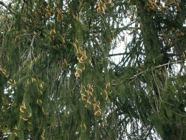 nel prato dietro casa ho due pini alti una quindicina di metri, uno, anche l'anno scorso, è "fiorito" (non so se il termine fioritura sia corretto parlando di pini)