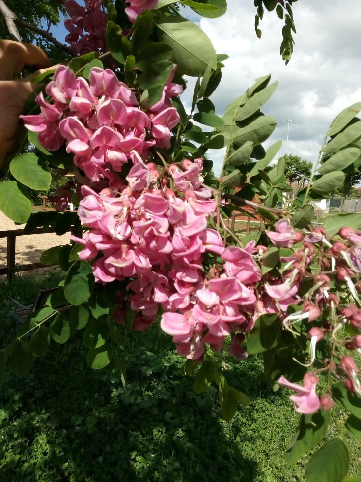 Ciao a tutti, ho una nuova richiesta da porre!! Che pianta è? Le foglie sembrano (almeno a me...  ) di acacia ma più grandi, i fiori in minor numero ma simili tranne che per il colore... di che albero si tratta? Una varietà di Acacia o non c'entra nulla?GRAZIE come sempre dell'aiuto!