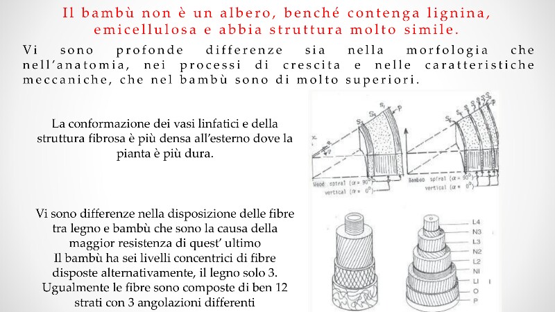Ciao Zar e grazie delle informazioni! !! Escludo il fatto che non ci sia legnina nel bambù. Preferisco non pronunciarmi più di tanto, preferisco dire solo che è da pazzi pensare di fare business con il bambù facendo pellets o comunque utilizzarlo per biomassa in quanto il culmo di MADAKE (e nn un qualsiasi bambù ) ha delle prestanze fisiche, strutturali e rigenerative, decisamente superiori al legno tradizionale. Gli sbocchi commerciali del legno di bambù sono sicuramente e principalmente gli elementi di design indoor e outdoor, la Bio architettura, il lamellare, il parquet ed il settore nutrizionale. Le carte vincenti del legno di bambù sono l'elevata velocità di rigenerazione, la notevole leggerezza strutturale, la flessibilità e la sua eccezionale durezza. Nelle tabelle alcuni esempi.