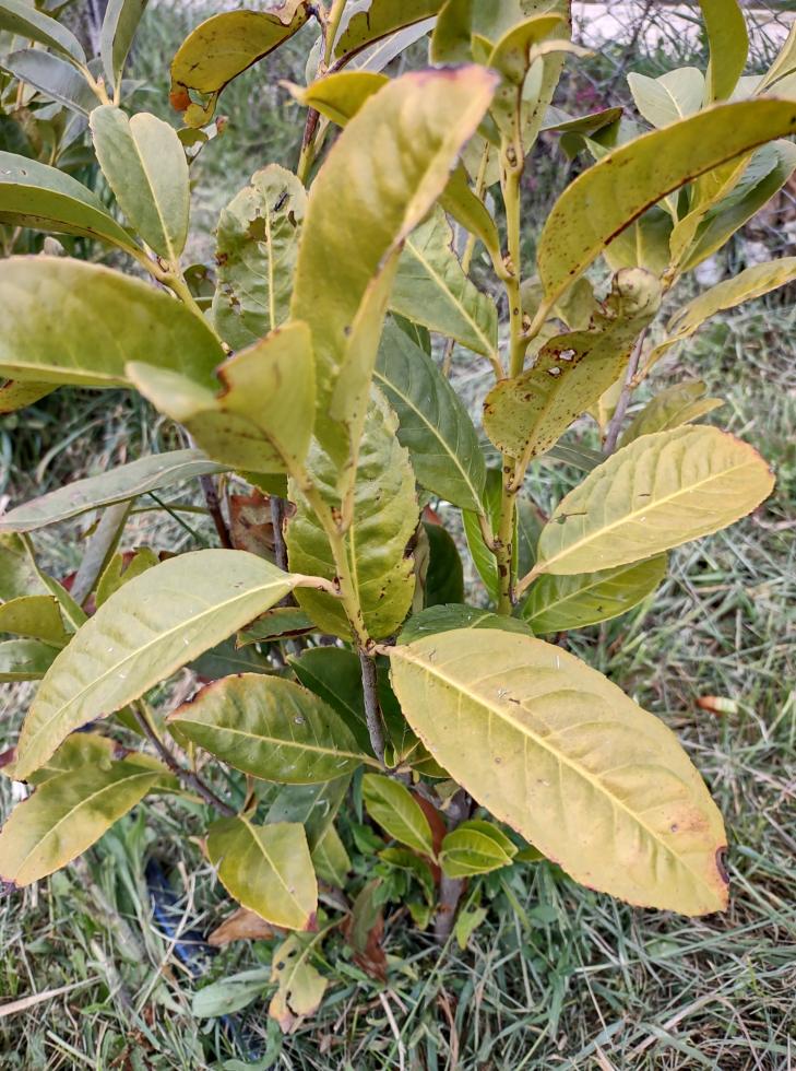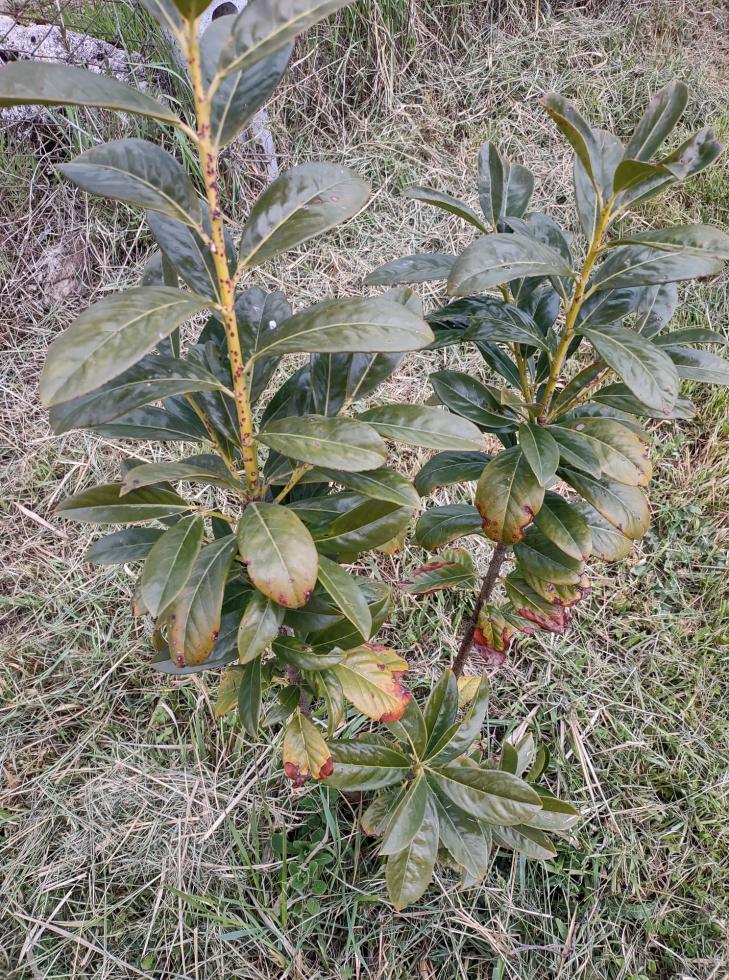 Alcune mie piantine di lauroceraso dopo l'inverno sono ridotte così; la maggior parte presentano un verde stinto, come se fossero sofferenti. Da quali fitopatologie sono state colpite? Che posso fare?
