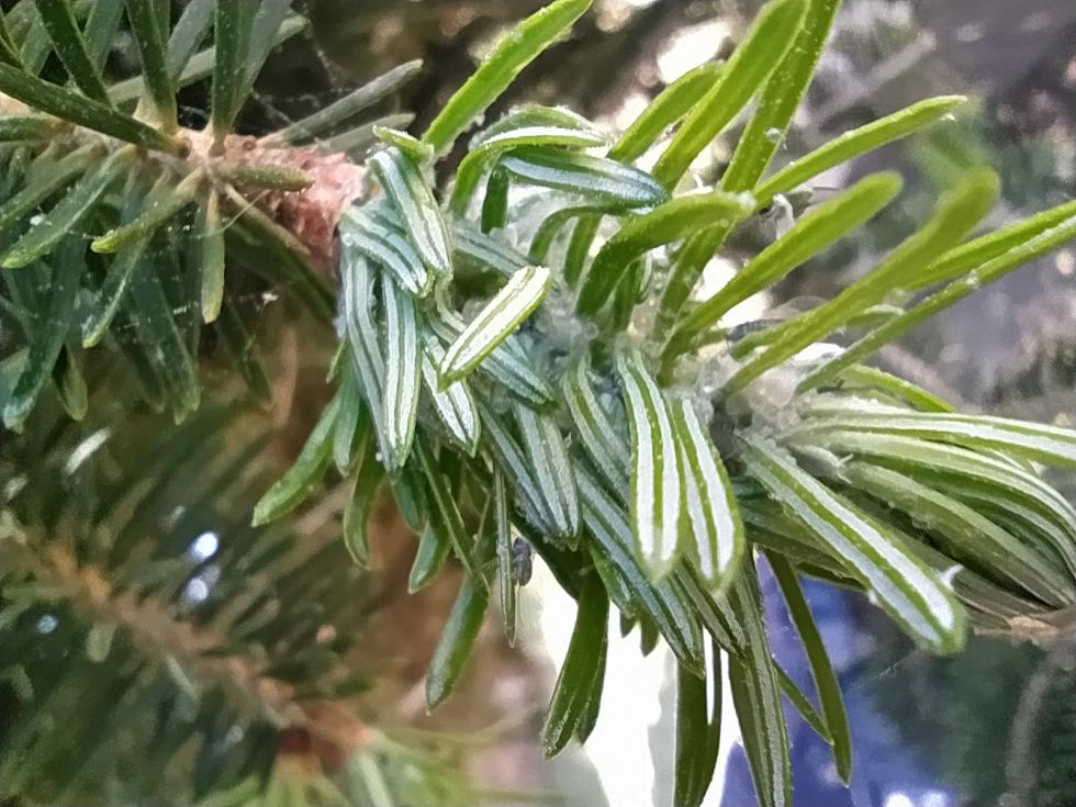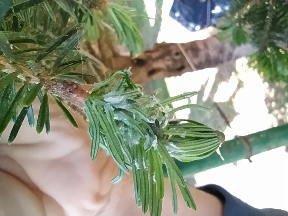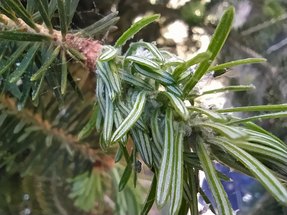 In alcune foto scorgo un paio forme scure tra gli aghi che potrebbero essere appunto gli afidi, inoltre vedo qualcos'altro di chiaro che probabilmente sono le loro esuvie (gli 'scheletrini' bianchi).