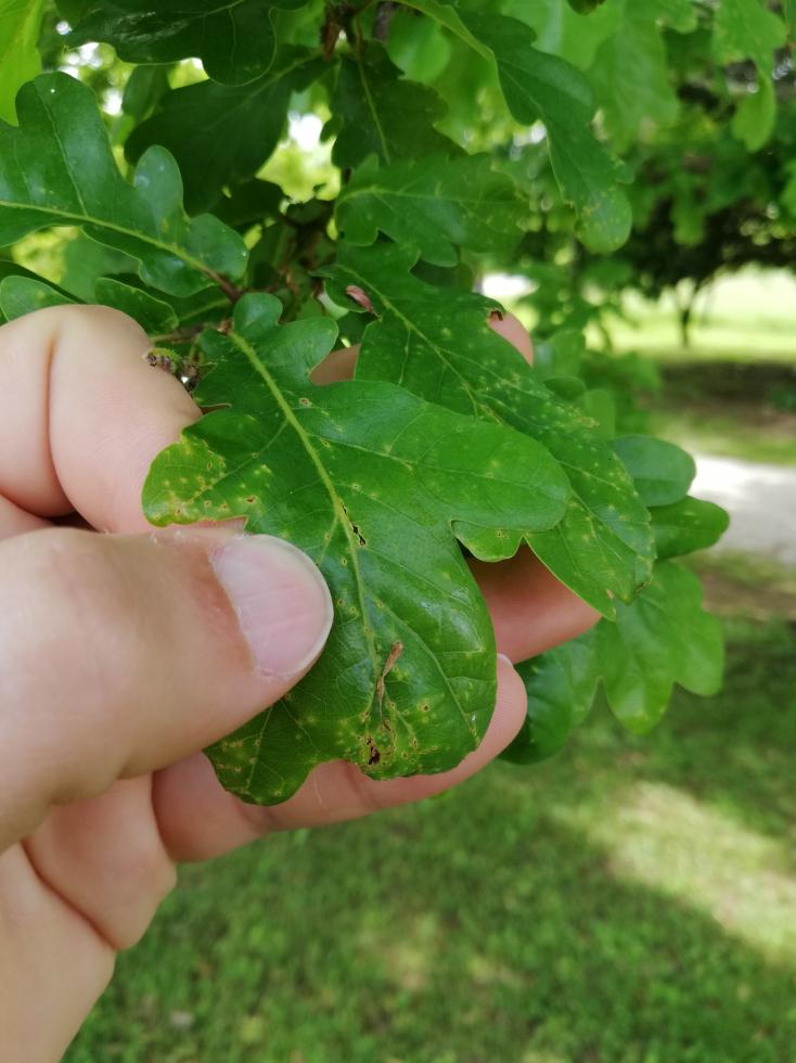 Buongiorno, Sono nuovo del forum ma vi scrivo con molto interesse nella speranza che mi sappiate dare qualche informazione. Ho di fronte a me una quercia piantata nel giorno in cui sono nato quindi con 33-35 anni di età perché credo sia un po' più grande di me. Da un po' di anni nelle foglie si presentano già dalla primavera queste puntinature nere sulle punte e delle macchie sbiadite sul resto della superfice. Mi piacerebbe capire che cos'è e come combatterla.La pianta come vedrete dalle foto è anche sotto attacco del rodilegno scuro che sto cercando di limitare usando una trappola ormonale ma su questo punto tirerò le somme nell'autunno 2023 quando vedrò finire il ciclo di questo bruco che vive nella pianta per ben tre anni. Insomma più che altro mi piacerebbe capirne di più sulle foglie. Grazie e a disposizione, Matteo.