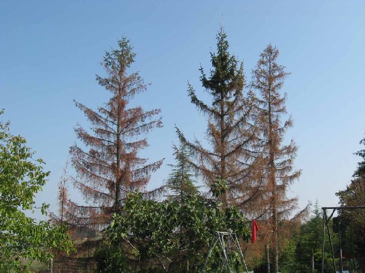 Ho un bel bosco di abeti rossi ed è dall’anno passato che si seccano i rami delgli abeti perdendo tutti gli aghi, dal basso verso l’alto poi muore l’intera pianta. Anche in un parco (foto sotto) vicino al mio bosco sta succedendo al stesa cosa. Gli abeti si trovano sulle colline romagnole, ad un' altezza di 500 m. slm. in un terreno argilloso esposto a sud e sono insieme a piante di noce. Mi hanno detto che la causa potrebbe essere ristagno idrico ed in effetti l’anno scorso i primi a morire erano situati in un posto dove c’era ristagno d’acqua, però quest’anno si sono ammalate piante in un crinale dove di acqua non ce ne. Allora mi hanno detto che muoiono per il caldo o per gli sbalzi bruschi di temp. dal freddo al caldo. Ho notato che appena si seccano presentano sulla corteccia dei buchi molto piccoli come se ci fossero dei tarli, forse è questo il problema, un parassita che attacca le piante. I rami sembra si accartoccino un po’ su se stessi. Mi chiedo se potete darmi consigli per salvare le mie piante e se avete notato anche voi questa cosa in altre zone. Grazie Simone