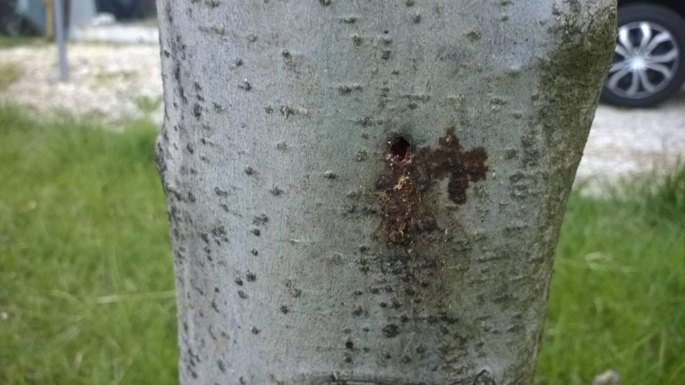 La foto iniziale non era molto chiara ma, come per il tuo caso, abbiamo avuto il sospetto che si trattasse rosura da rodilegno, perciò abbiamo chiesto di pulire e vedere sotto...quel che apparso è nella seconda foto.