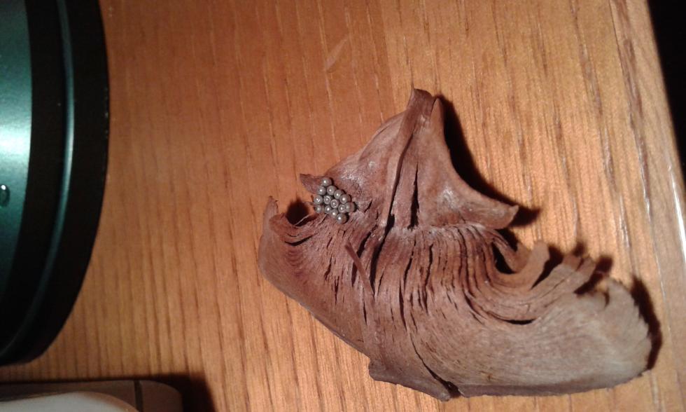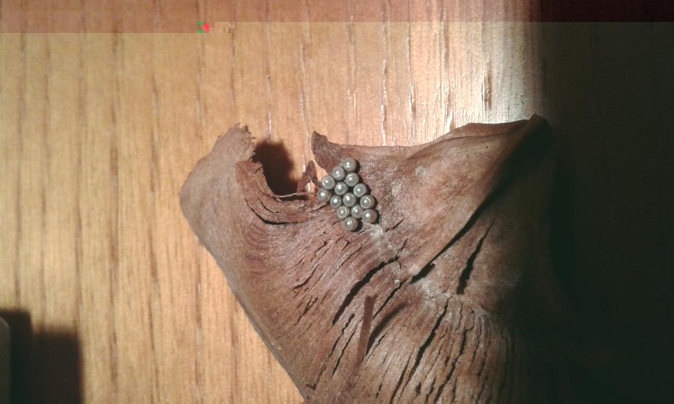 Allego altre due foto. le palline risultano come incollate al legno. Le staccate e ne ho schiacciate alcune; all'interno c'era una piccola poltiglia liquida. Sembra un giallo! Comunque grazie per avermi risposto Ciao Enrico