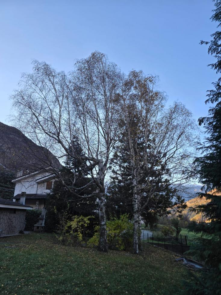 Ora vorrei porvi un quesito. Vorrei potare due pini senza abbatterli, solo dimezzare l'altezza se fosse possibile. Non so di che tipo di pino si tratti. Inoltre visto che affitterei un cestello dovrei potare anche delle betulle, anch'esse piantate almeno 50 anni fa. Sono cresciute tanto in altezza e necessitano di un taglio.