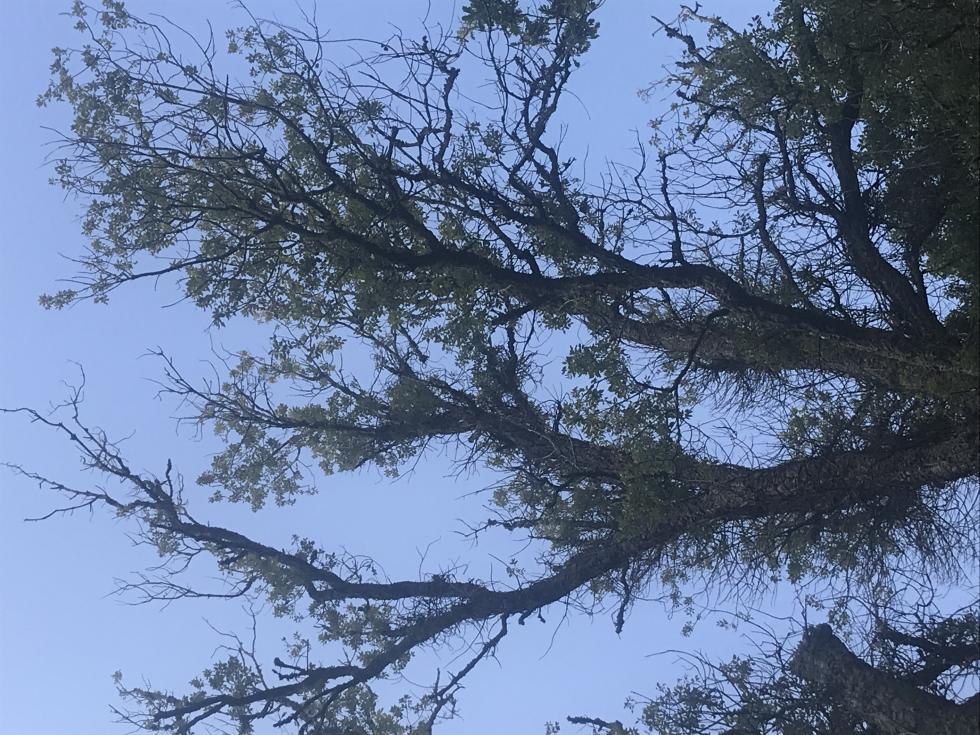 C'è una quercia che sta visibilmente soffrendo.