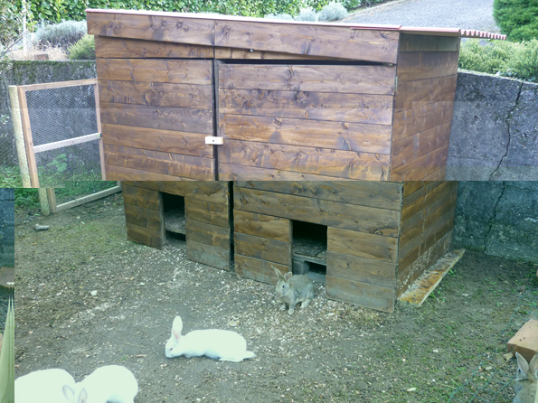 Ciao foto dell'interno non ne ho...e ora fare una foto è un po brutto (stanotte ha buttato giu 35cm di neve). Se hai pazienza la posterò più avanti. Intanto cercherò di spiegarti...è molto semplice: Il pavimento è fatto da bancali con appoggiato sopra un pezzo di compensato(per chiudere i buchi del bancale tra un travetto e l'altro e per poter pulire). I conigli si rintanano sotto ai bancali per dormire. C'è poco altro...3 mangiatoie (tipo quelle dei polli lunghe) attaccate alla parete di fondo (quando i conigli sono tanti integro con un ciotolone tondo) e ai lati c'è una rastrelliera per il fieno.
