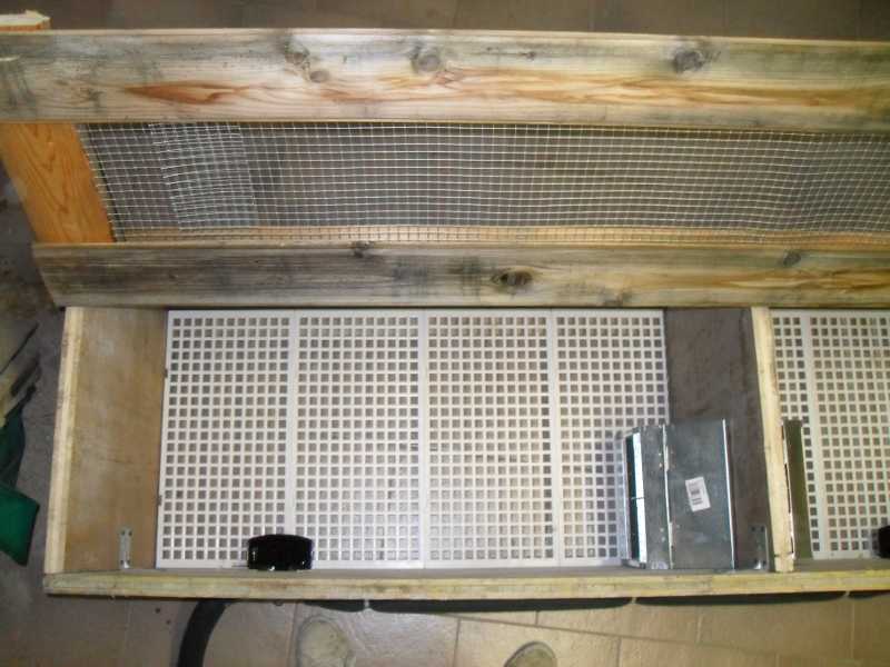 l rete e posta sopra e nel d'avanti ma nn si vede tanto bene riguardo al fondo l'ho pagato 2,70 l'uno e è fatto apposta x i conigli e il sistema piu economico ma va benissimo nn gli crea nessun problema l'altro sistema delle stecche mi veniva quasi il doppio le tramoggio le ho messe li xke ho delle misure da rispettare si lunghezza e il sistema i beverini e autonome per un minito di una settimana
