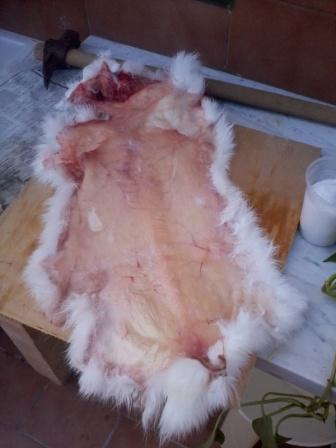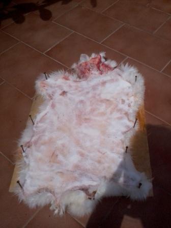 ehy raga dopo aver spellato per bene questo bel coniglietto è mettendo la pelle distesa e buttandogli del sale ogni giorno per 4 giorni già si è seccata !!!! ora che faccio levo il sale in eccesso e la sciacquo?
