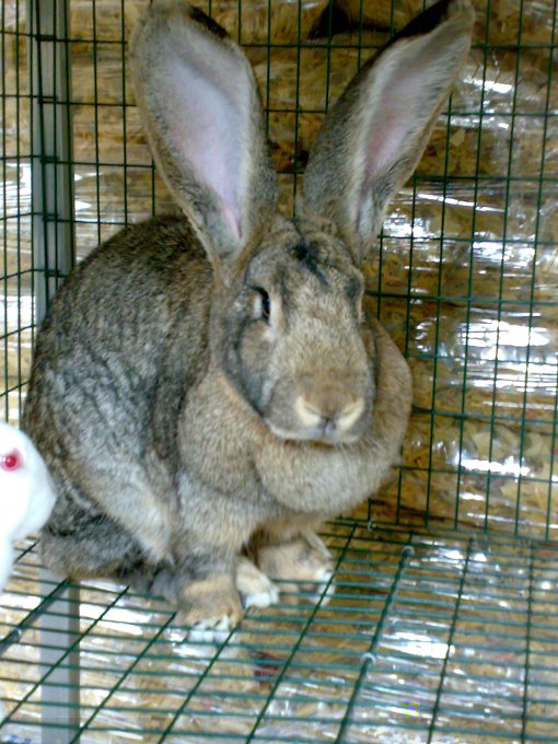 Bella la femmina di gigante grigio.è vero che han dei prezzi molto alti,ho visitato alcuni piccoli allevamenti...Il gigante pezzato,forse è addirittura più bello,soprattutto per lasua eleganza.ma ha il difetto che è difficile far uscire animali con la giusta pezzatura.c'è molto scarto,tanti nascono neri e molti altrihanno le macchie fuori posto o fuori misura.Un allevatore di gigante grigio e bianco mi ha detto che lui la considera una razza mal selezionata e con una genetica sbagliata proprio per questi motivi.Però rimane un animale stupendo,sia il bianco e nero che il bianco e blu.