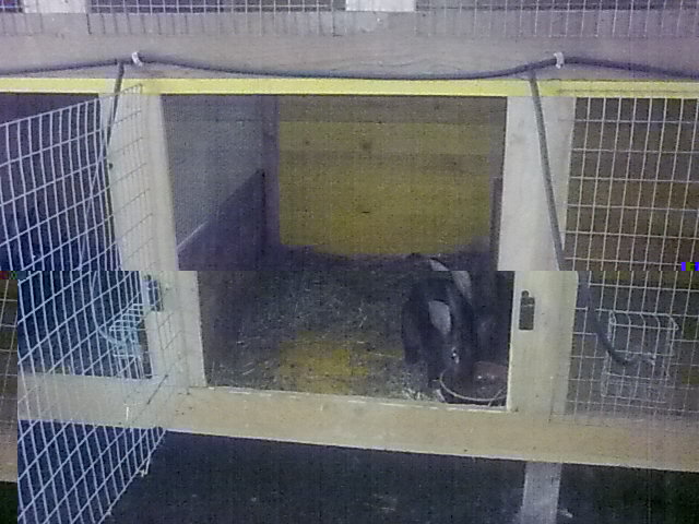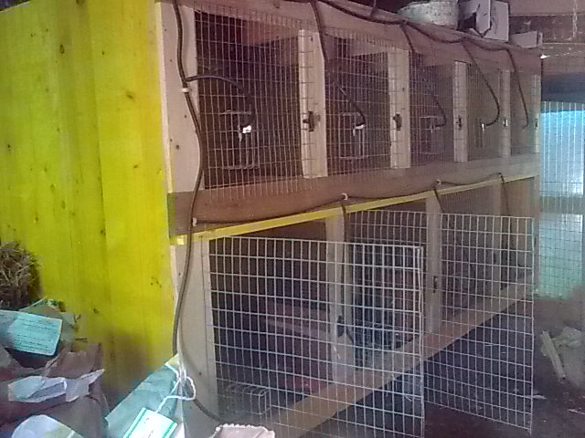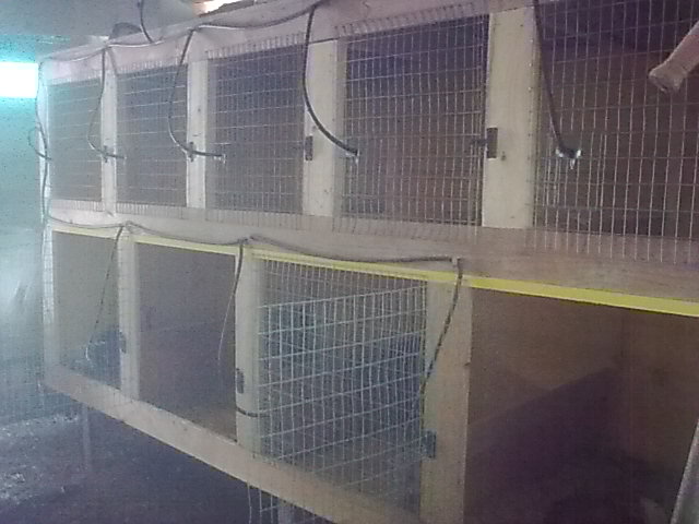 ciao posto una foto delle gabbie che ho costruito con dei pannelli da muratore listelli 3.5x5 per le porte e rete con maglie 1cm x 1cm un pò di inclinazione per le urine e dei fori posteriori per agevolarne l`uscita l`ho chiamato armadio  molto differente dalle gabbie generalmente usate la mia è un multilevel con varie dimensioni per riproduttori e c. da ingrasso é pratica perchè sono tutti lì ma mi tocca pulirle spesso e mettere un fondo di segatura negli angoli dove sporcano. Comunque il materiale l`ho reperito gratis quindi a caval donato non si guarda in bocca per il momento il mio hotel mi da comunque soddisfazione saluti Fabi. Allegato: