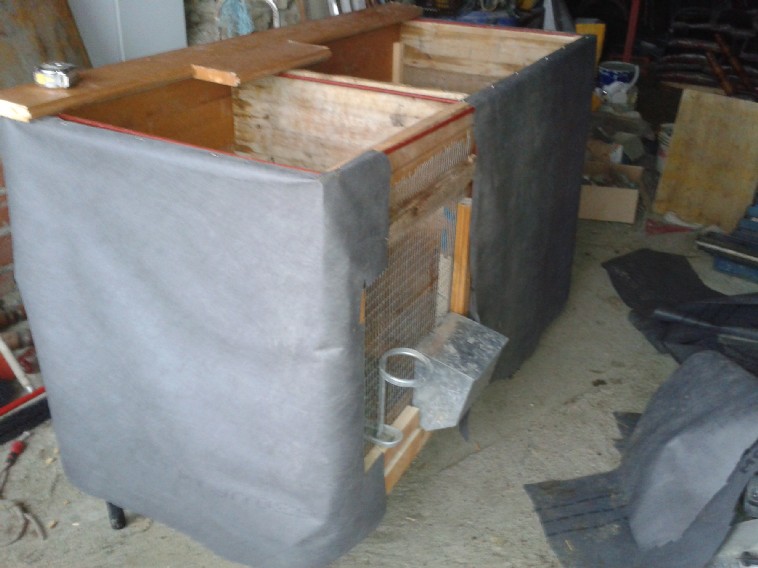 Ciao a tutti ho appena autocostruito una gabbia destinata a stare esterna,allora le dimensioni sono 180 per 80 per 80 di altezza,ho usato del perlinato spesso 3.5 cm e dei pannelli di pari spessore e poi lo rifoderata con una guaina per far si che il lgno non si inzuppi,sopra poi verra posizionata una chiusura in legno sempre in perlinato e poi sopra una lamiera,potra bastare per la coniglia che inoltre tra una settimana dovrebbe partorire intanto ecco le foto