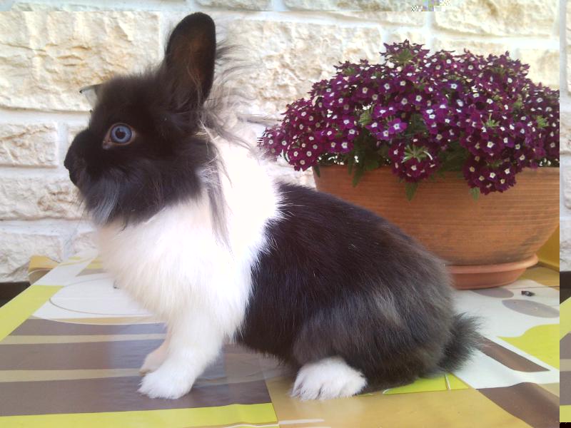 Commento file: maschio testa di leone colorazione olandese bianco/nero occhi azzurri!