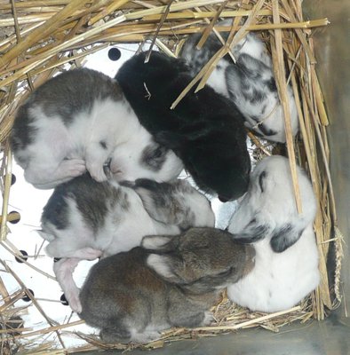 ciao aspartaco. i selvatici li ho razzolati da vari nonni della zona, e vedessi che battaglia acchiapparli ma sono selezioni fatte dai nonni stessi in anni di garenna, ma chissà che c'è dentro, come si nota chiaramente, esce il nero che è una bellezza. ho 5 fattrici e due riproduttori, tutti, si spera, non consanguinei, più una cucciolata di un riproduttore rosso e bianco, che devo selezionare, riproduttori in gabbione per ora, piccoli da destinare al macello in terra. sto costruendo, purtroppo mooolto lentamente, anche strutture per i riproduttori in terra. meglio la segatura, piuttosto che la sabbia, secondo me, assorbe meglio, perchè si dilata, e contrasta meglio gli odori. si, i conigli, in genere, tendono a sporcare nello stesso punto, anche se la pecora nera c'è sempre vale più per le urine che per le feci, ma, se si mantiene una pulizia costante, io lo faccio settimanalmente ma c'è chi lo fa più di rado, grossi problemi igienici non se ne hanno. poi ovviamente dipende da quanti conigli si tengono ed in quanto spazio. 3 conigli in 20 metri quadri o 10 in 30, il discorso cambia. ma vedrai che ti renderai conto perfettamente con l'esperienza. ciao michele(accio)
