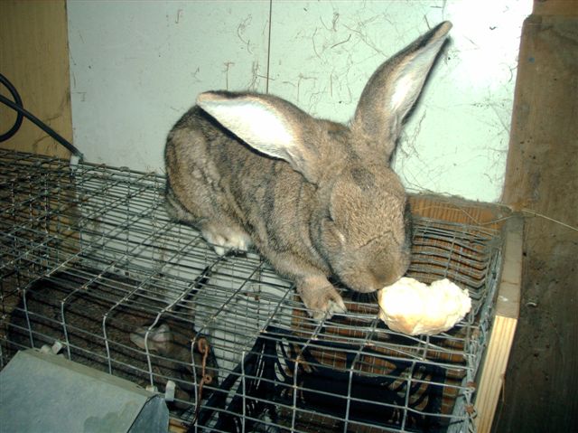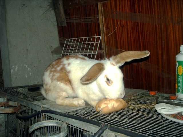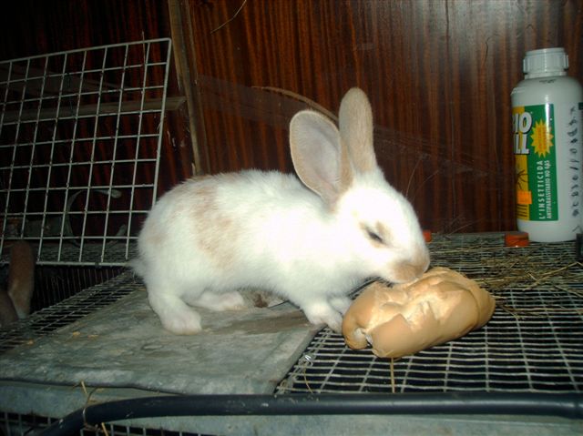 ho 5 fattrici e due riproduttori, tutti, si spera, non consanguinei, più una cucciolata di un riproduttore rosso e bianco, che devo selezionare, riproduttori in gabbione per ora, piccoli da destinare al macello in terra.