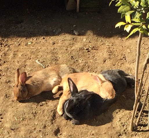 Belli i tuoi conigli ,e anche le gabbie, ma secondo me ti rosicchieranno tutto il legno, io le faccio anche con assi di recupero, ma metto la rete all'interno evitando così il rosicchiamento. Ciao