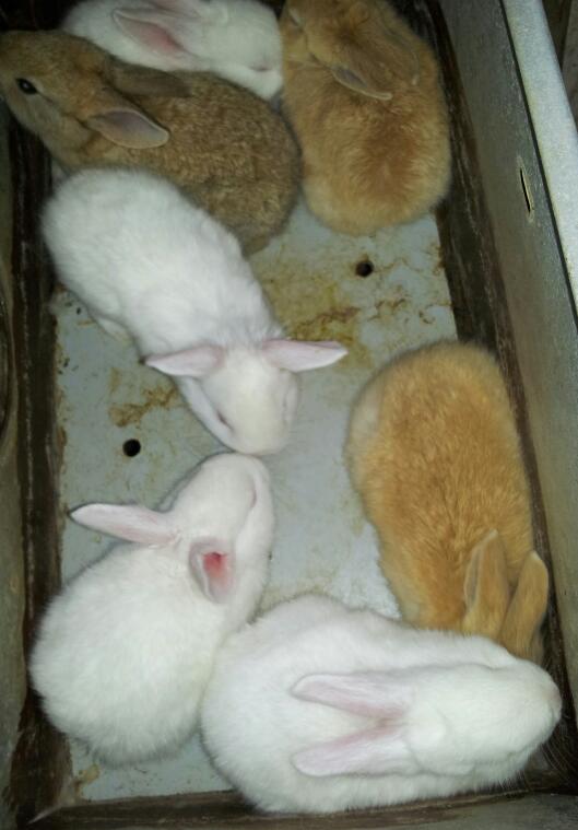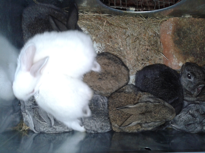 Ecco gli ultimi arrivati (nati il 9 maggio) 10 coniglietti di padre ibrido grigio e madre ibrida nera.