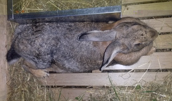 Grazie a tutti! La coniglia è abbastanza grande, è vero, ma così a occhio (non l'ho ancora pesata) secondo me non arriva ai 5 kg. Come ho già detto sono nuova dell'ambiente quindi se sparo qualche cavolata ditemelo pure... Non potrebbe essere frutto di qualche incrocio casalingo? La persona da ci l'ho presa credo non presti particolare attenzione alle razze...