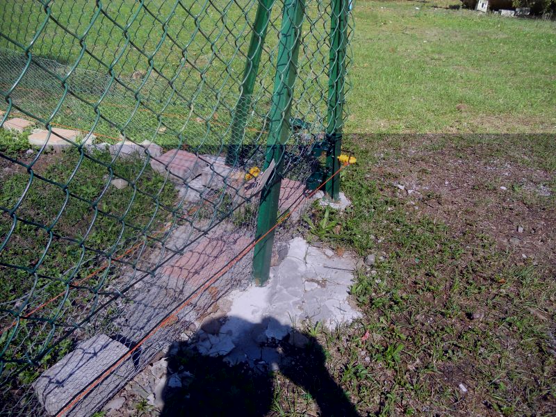 riguardo la profondità di interro della rete, non meno di 50 cm, se si vuole stare tranquilli, impedisce a loro di uscire e ad altri di entrare, scavando.