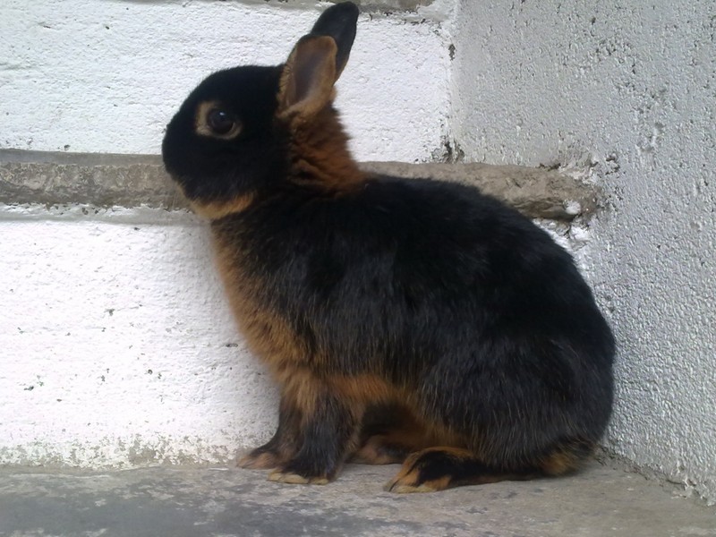 ecco il mio coniglietto di razza nana nero focato...che ne pensate ? potrà essere un valido riproduttore ?