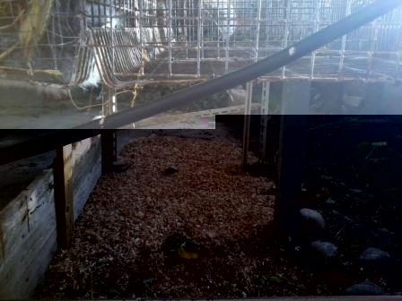 io quando avevo le gabbie avevo una lamieria inclinata e una grondaia tipo un tetto, ke sbucava all esterno del box...