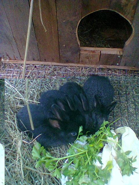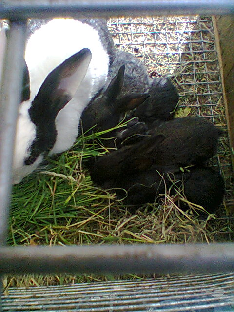 Ciao a tutti, oggi dopo 44 giorni o tolto i piccoli dalla mamma e li ho messi in un altra gabbia tutti insieme. Fra un paio di settimane li separo in gabbie singole . Sabato o domenica dovrebbe partorire un altra coniglia vi terrò aggiornati anche con la california