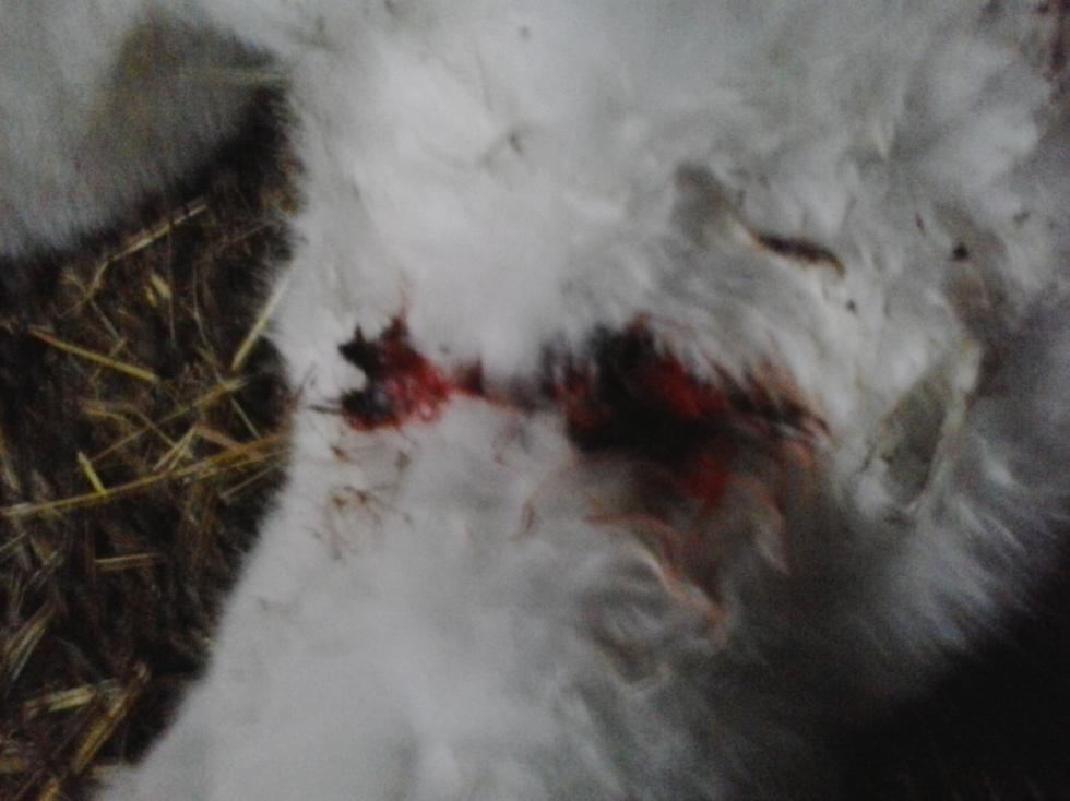 Non si comprende che ferite sono, sulla porta sembra ci siano graffi. All'interno gli animali erano liberi o in gabbia? I conigli possono anche morire per un forte spavento o procurarsi lesioni sbattendo in preda alla paura indubbiamente quella che mostri morsi ma di cosa non saprei
